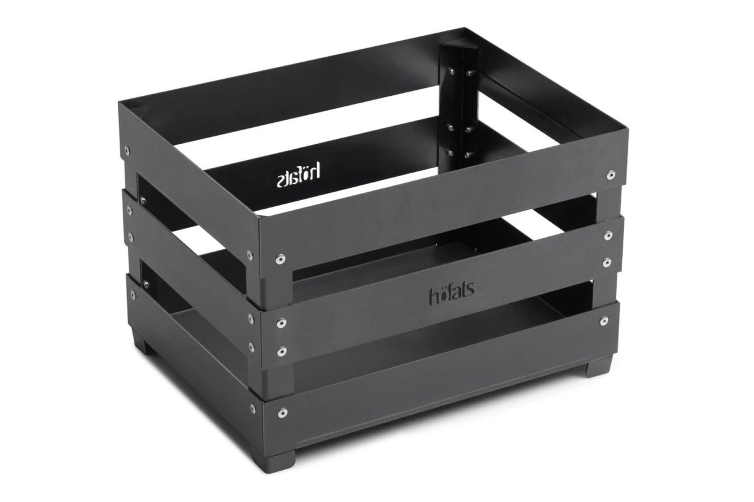 L’Höfats Crate est un brasero original, en forme de caisse. On peut aussi s’en servir comme meuble, barbecue ou caisse de rangement. Il est fait en acier corten. Il s’agit d’un acier avec une composition particulière, qui a souvent une couleur rouille. La légère couche d’oxydation permet de protéger le matériau de base contre l’oxygène. Cela va éviter la rouille. Il est donc important de toujours le ranger au sec.