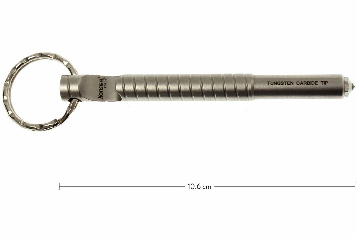 Joli porte-clés avec ouvre-bouteilles et casse-verre en carbure de tungstène. En plus, l’Eskaper est possible à l’emploi comme un kubotan, une petite arme de défense personnelle.