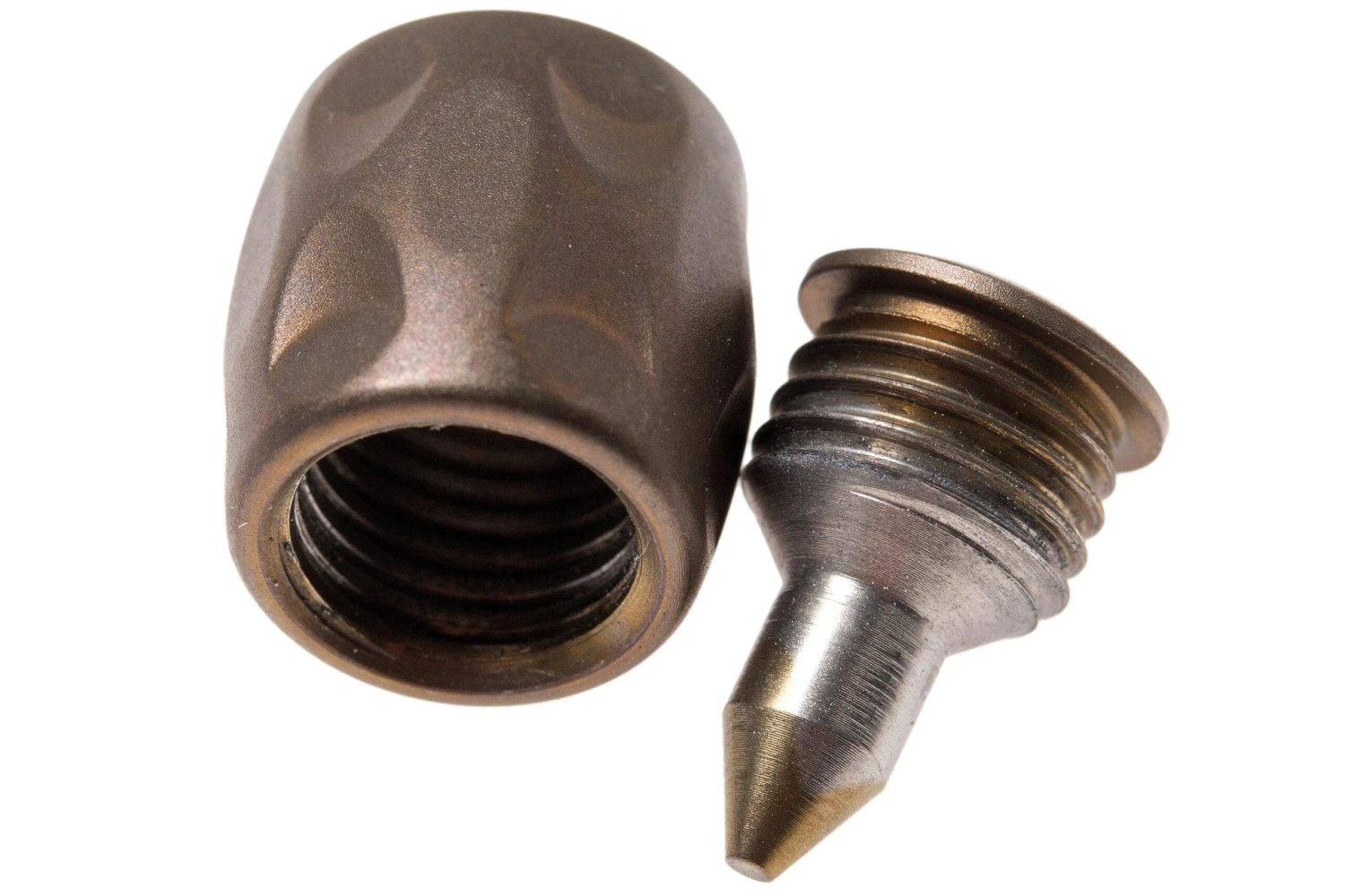 Le LionSteel TiP est une superbe perle pour lanyard fabriquée en titane. Alors que pour la plupart de ces perles il est nécessaire de faire un nœud pour ne pas qu’elles glissent, la construction du TiP est différente. Cette perle est équipée d’un système de vissage qui la fixe directement aux deux bouts de la corde. Le LionSteel TiP est donc positionnée au bout du lanyard à la place du nœud standard. Pour visser le LionSteel TiP sur un lanyard, il est nécessaire d’avoir une clé Torx 10 à portée de main. Cette perle est conçue pour de la paracord 550 standard entre 4 et 5 mm d’épaisseur.