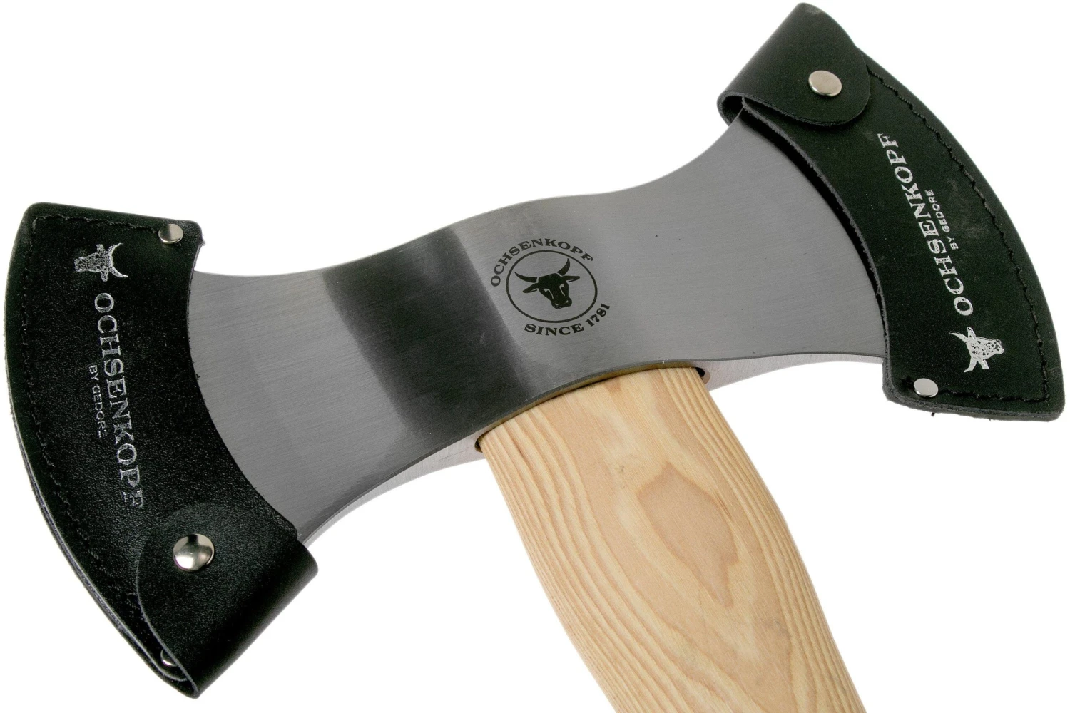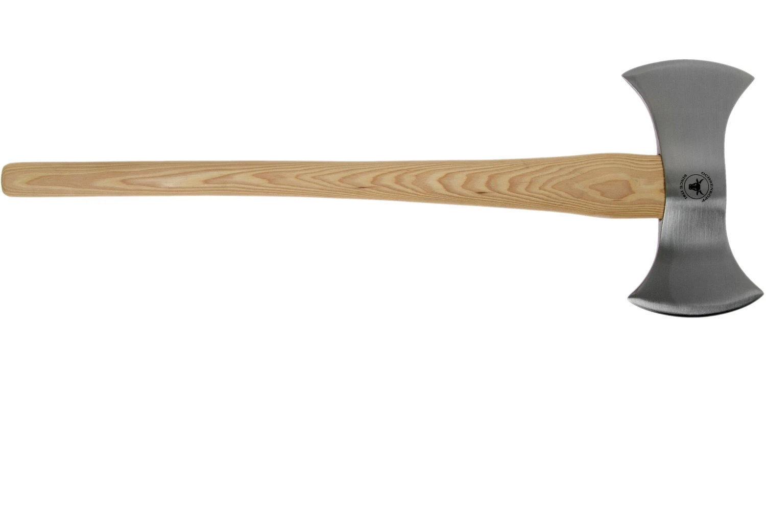 La hache de jet Ochsenkopf OX 18 H a été spécialement conçue pour les compétitions. Cette hache a un équilibre parfait pour un lancer optimal. La forme et le design sont conformes aux normes des compétitions et la hache porte un numéro de série croissant. Les arrêtes de coupe sont tranchantes comme des rasoirs et polies. Cette hache est livrée avec un étui en cuir pour protéger les arrêtes.