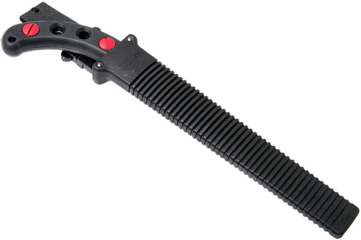 La Silky Gomtaro Nidangiri est une scie d’élagage fixe et pratique. Vous l’utilisez pour tailler vos arbres et arbustes. La lame étant fixe, vous n’avez pas à vous soucier d’une fermeture involontaire. Concevoir une scie à lame fixe permet de construire la transition entre la lame et le manche à la perfection. Beaucoup disent donc que la Gomtaro est plus agréable à utiliser que les autres modèles.