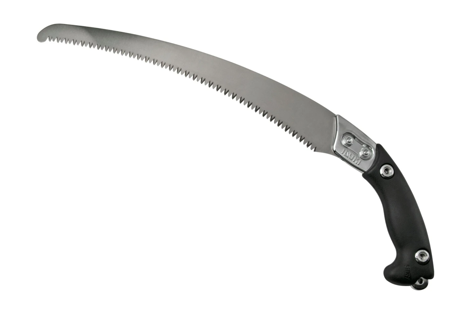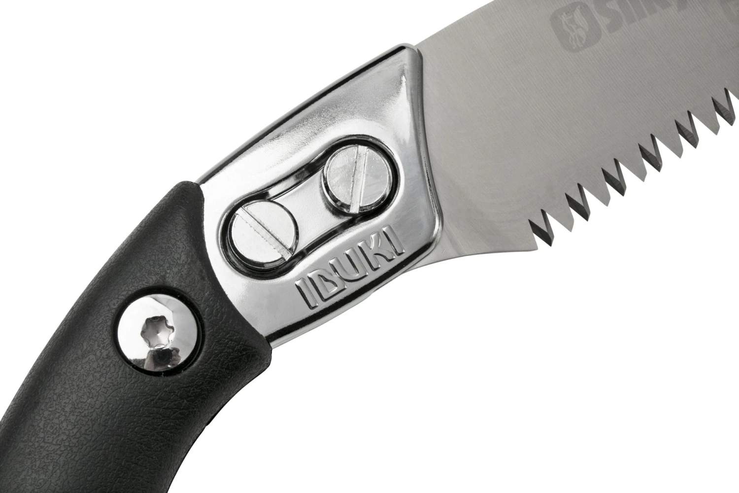 La Silky Ibuki 390 n’est pas une scie qu’il faut sous-estimer ! Sa lame mesure 39 cm de long et son manche est imposant. On peut remplacer facilement la lame grâce aux deux vis. Pour ce faire, il suffit d’un tournevis. La lame est fixe, et on ne peut pas la replier.