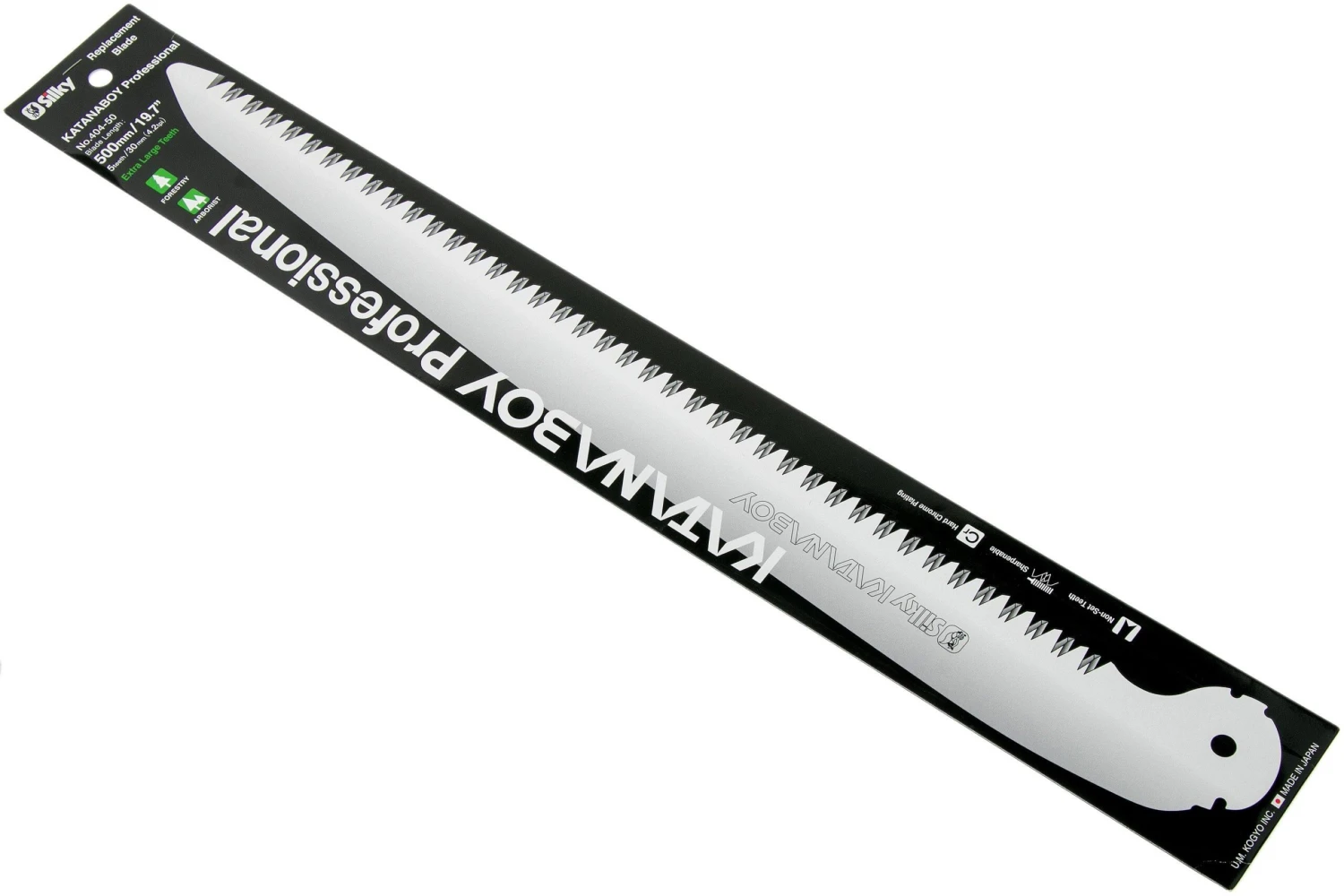 Utilisez cette lame de scie Silky Katanaboy lorsque celle de votre Silky Katanaboy est endommagée. Cette lame de scie est également pratique lorsque vous souhaitez changer de type de dentelure. Les dentelures de cette lame de scie sont aiguisées et sont donc très tranchantes. Le chromage de la lame prévient la corrosion et repousse l’accumulation de résine. Avec quatre dents tous les 3 centimètres, cette dentelure est extra large. Les troncs d’arbres et les grosses branches ne feront pas le poids contre cette lame de scie.