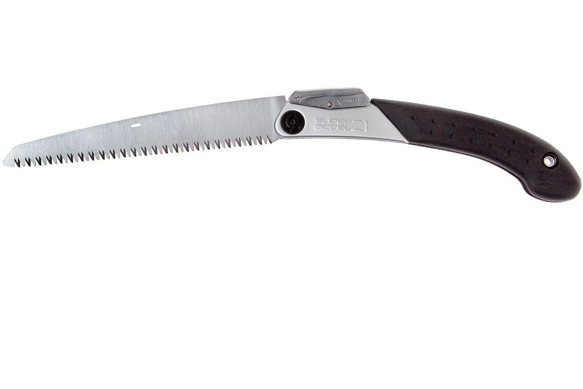 La Silky Super Accel est une très bonne scie pliante, idéale pour une utilisation outdoor. En plus d’un couteau et d’une scie, une scie pliante légère et compacte devrait faire partie de votre équipement. Plus besoin de passer du temps à chercher le morceau de bois idéal, il vous suffit de le couper. Le manche est en matériau caoutchouteux confortable avec une bonne adhérence.
